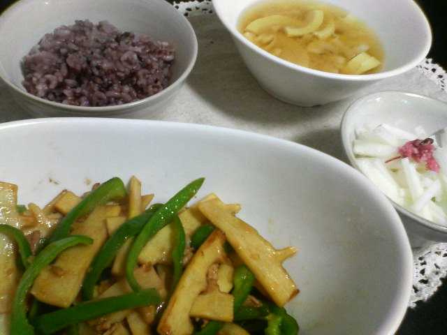親戚で作ったトマトをもらいました。先週買ったパセリも使わないと。ごぼうは…。というわけで夕べは仕込み。