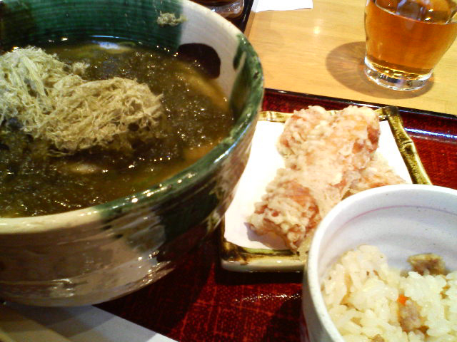 カレーうどんもいいなあと思ったのですが、今日はなんとなくカレーの気分ではなかったので、ミネラルたっぷりのとろろ昆布うどんにしました。先日食べはぐった小さい炊き込みごはんもついてきました。でも私、うどんでお腹いっぱい…。