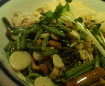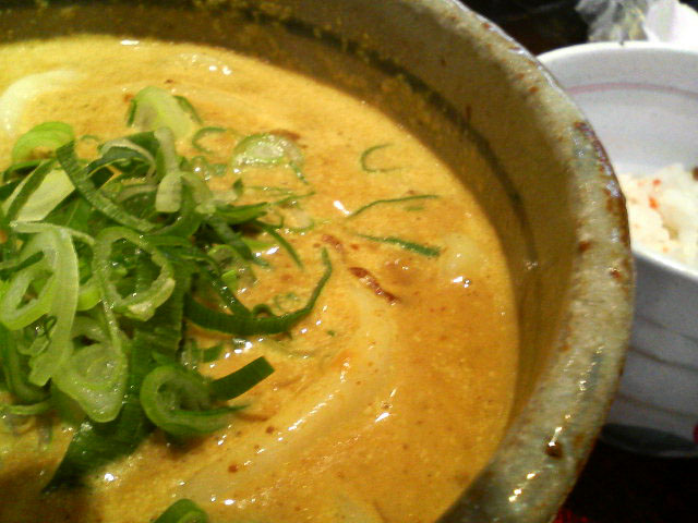 クリーミーなカレーがもちもちのうどんにからんでおいっしー。とってもクリーミーなのですが、スパイシーで、絶妙感ありあり。これは人気メニューだというのも頷けます。赤ちくわをカレーにつけて食べてみましたが、それなりにおいしかったです。エビ天だともっとおいしいのかしらん?次回、ぜひ挑戦してみようと思います。