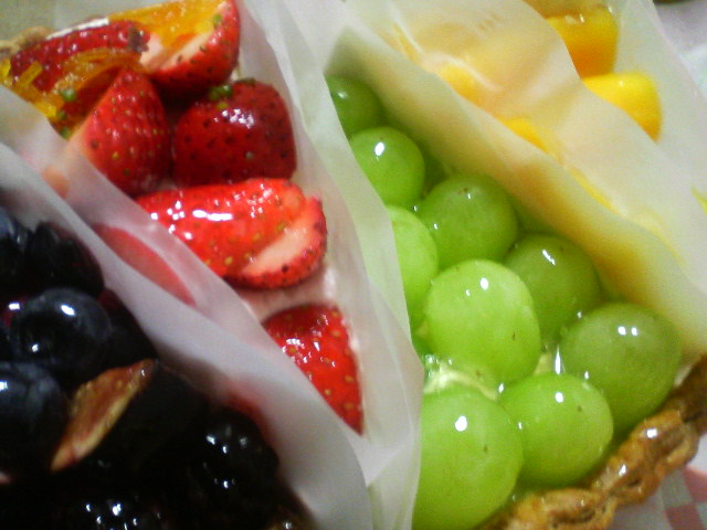 美しい…。特にマスカットのタルトは宝石のよーじゃありませんこと?オホホ。もちろん味も素敵なんでございますのよ?キルフェボンのタルトなんて1年以上ぶりかもしれない。