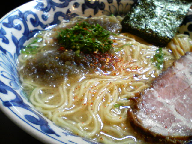 とろろ昆布の塩とんこつ風味です。相変わらず優しい魚系のスープ。これにとろろ昆布がじんわり絡むと、とろけるようなおいしさです。デュラムセモリナを使った麺も、歯切れが良くて大好き。どこのラーメン屋さんに行ってもスープを飲み干すなんてことはないんだけど、斑鳩は最後の一滴まで味わいたい。