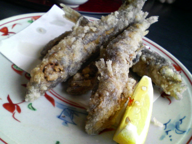めひかりの唐揚がおいしそうでしょう~~~!やわらかくて、ぷりんぷりんの身で、すっごくおいしかったです。感激!味付けは薄味。好みに合わせてお醤油つけてねってことだと思いますが、私はお醤油ナシでいただきました。頭がけっこう「にがおいしい」感じだったので、あえてお魚のうまみをまんま味わってみました。あー、ごちそうさまでした。