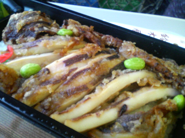 お弁当にはみそダレが別に付いていて、これをドバーッとかけて食べるのです。東京に戻り、家に着いてから食べましたが、冷めてても美味しかったです(あえてあっためなかったの)。フツーのカラシがまた効く!庶民の味!だけど庶民プライスじゃないの。おべんとにしては高いしね!でもヒレのでっかいのが2つ(4分割されてる)も入ってるんだよね。