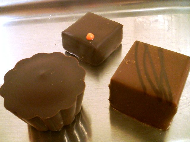まずはショコラバーでボンボンショコラをいくつかお試し。ベルナシオン、フレッソン、ファブリス・ジロットなど、狙ってたものは全滅。今日で3日目だし、まあ予想はしてましたが、残念。