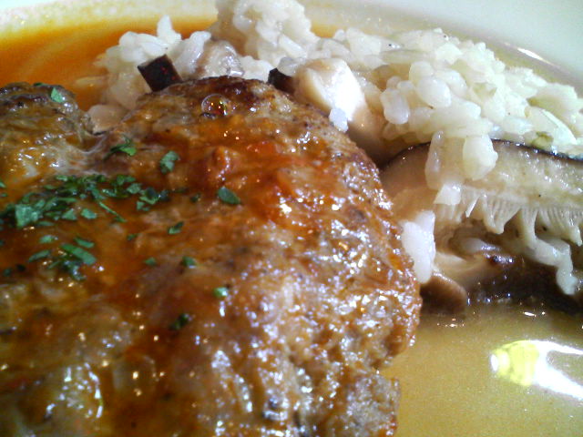 煮込みハンバーグは塩とナツメグが効いている大人の味。ソースの味は淡泊で、肉の旨みが生きてます。きのこのリゾットに関しては、ちょい水っぽい気がしましたが、きのこ大好きなのでノープロブレム。私がここのお店ですごく好きだなーと思っているのは野菜スープ。地味ながら滋味。スープかデザートを選べるのですが、いつもスープをオーダーしてしまいます。