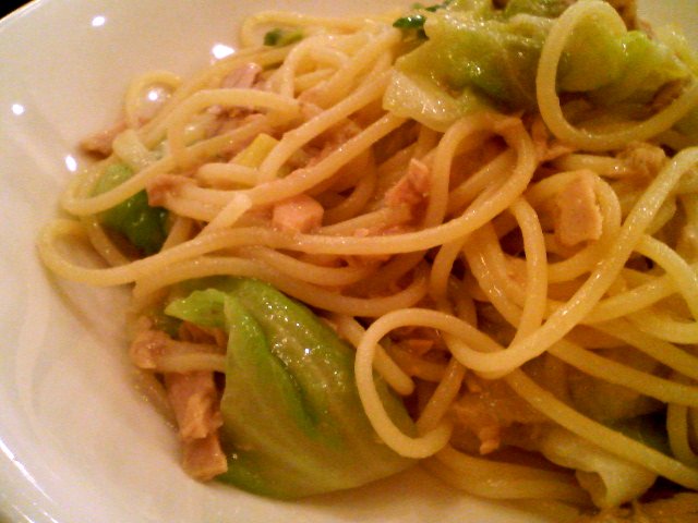 【メニゥー】サラダ+春キャベツとツナのスパゲティーニ(1050円)