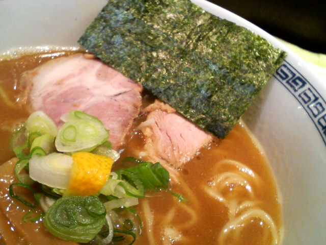 出ました、らーめん♪シンプルながらも、実に力強い魚系スープの傑作!私、魚系のラーメンが最も好きなので、「はやし」に出会ったときは本当に嬉しくて嬉しくて。麺の上の、ゆずの皮が味と香りのアクセントになっていて、上品。両手で持ちやすいどんぶりは小ぶりなのに深さがあって、見た目よりはるかにボリュームがあることに食べ始めてから気づきます。最初は驚きました。シナチクの太さにも感激。このシナチクがまたうまいのなんのって。ぷりぷりで歯ごたえがあるのに柔らかい。味付けも絶妙です。私の中で、今、東京の2大おいしいラーメンの巨塔は「はやし」と「斑鳩」です。あー、また行きたいわ~♪