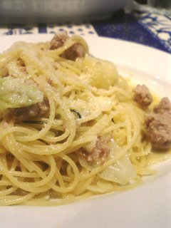 本日は自家製のサルシッチャとキャベツのパスタをオーダー。シンプルな塩味に、ローズマリーが優しく香る逸品。久しぶりに「おいっしー!」と叫びたくなるようなパスタでした。ボリュームもけっこうあるので、このお店にはお腹がぺこぺこのときに行くのが正解なのではと思います。